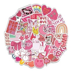100 Pcs Preppy Stickers Vinyl Pink Aesthetic Waterproof Sticker Decor Party Supplies Suitable for Laptop Mobile Phone Computer Skateboard Water Bottle Suitcase Car