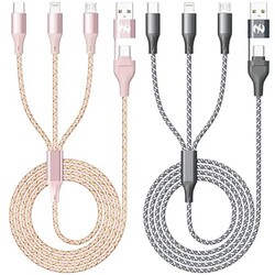 IDISON Multi Charging Cable (4ft 2Pack), 3 in 1 Charging Cable Nylon Braided USB A/C Port iPhone Charger Cord with Type C Lightning USB for Apple iPhone Android Phone -Rose Grey