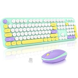 MOFII Wireless Keyboard and Mouse Combo, Cute Keyboard Full Size and Wireless Mouse, 2.4GHz Retro Typewriter Keyboard and Mouse Set for PC/Desktop/Laptop/Windows (Mint Green)