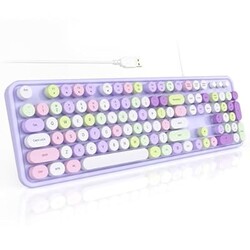 SQMD Colorful Computer Keyboards Wired, USB Plug and Play Full Size Typewriter Keyboard, Cute Aesthetic Keyboard with Foldable Stands for Windows PC Laptop (Purple)