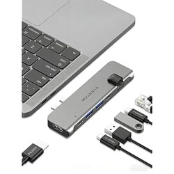 LENTION USB C Hub for MacBook pro M4 M3 M2 M1 2025-2016, Thunderbolt3, 3 USB A 3.0, HDMI 4K@30Hz, Gigabit Ethernet, MacBook Docking Station Compatible with MacBook air m4 2025-2018 (CS65, Space Gray)
