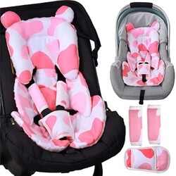 Honeau 4in1 Newborn Carseat Insert & 3 Strap Cover,Reversible Infant Car Seat Insert Head Body Support,Thickened Baby Car Seat Pillow Cushion Boys Girls Preemie,Fit Stroller,Swing,Bouncer,Rocker,Pink
