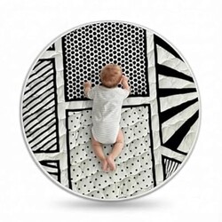 Byrd & Blume Reversible Round Baby Play Mat – Black & White Print/Solid Gray
