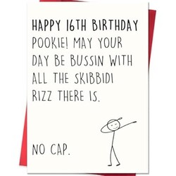 VDOR Funny 16th Birthday Card: Standard 8x5.3in Sweet 16 Greeting Gift with Meme-Inspired Design for 16 Year Old Teen Boys Girls Son Daughter