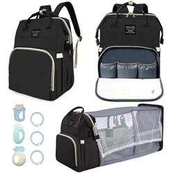 Fandiar Diaper Bag with Changing Station, Baby Diaper Bag with USB Charging Port, Multi-functional Waterproof Travel Essentials Diaper Bag Backpack for Boys & Girls, Black