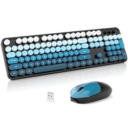 SQMD Wireless Keyboard and Mouse Combo, 2.4GHz Retro Full-Size Typewriter Keyboard with Number Pad and Wireless Mouse for PC/Laptop/Desktop/Windows (Black Blue)