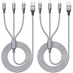 Multi Charging Cable (6ft 2Pack), 3 in 1 Charging Cable Travel Essentials,iPhone Charger Nylon Braided Cord with Type C Micro Lightning USB C for Apple Android Phone
