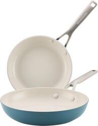 KitchenAid Hard Anodized Ceramic Induction Nonstick Cookware 2-Piece Frying Pans/Skillet Set, Dishwasher Safe, 8.25 Inch and 10 Inch Non Stick Fry Pans with Stainless Steel Handles - Agave Blue