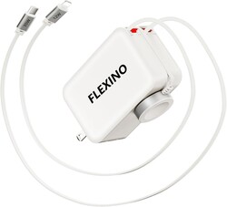 Flexino 5-in-1 Retractable Wall Charger with Apple Watch Charging, Foldable Plug Charger with 3.28ft Retractable Cable for iPhone 17/16/15/14 Pro Max, iPad & Wireless Earbuds (White)