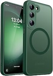 CANSHN Designed for Samsung Galaxy S23 Case [Full Camera Protection] [Compatible with MagSafe] Translucent Matte Shockproof Protective Phone Cover 6.1 Inch - Deep Green