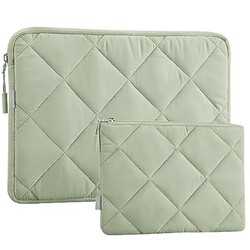 LANDICI Puffy Laptop Sleeve 15.6 Inch, Cute Laptop Case Compatible with MacBook Pro 16, 15.6-16 Inch Lenovo Acer Dell HP Asus, Slim Computer Bag with Accessories Pouch, Green