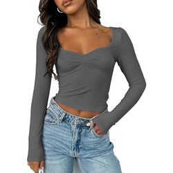 Sumtory Women Sweetheart Neckline Basic Fitted Tops Long Sleeve Going Out Crop Tops Ruched T Shirts