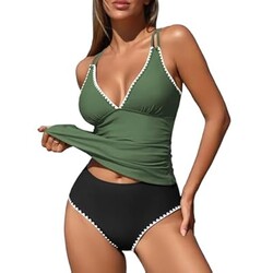 ZAFUL Womens Tankini Swimsuits V Neck Push Up Swim Top Color Block Tummy Control High Waisted Bathing Suits Swim Bottom