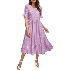 Wenrine Women's Off The Shoulder Mini Dress Summer Short Sleeve Smocked Waist Y2K A Line Going Out Club Dresses