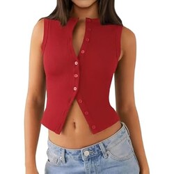 Relety Womens Crop Tank Tops Going Out Button Down Vest Seamless Ribbed Trendy Shirts Cute Sleeveless Summer Spring Y2K Cami