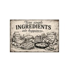 Turn Simple Ingredients Into Happiness Vintage Tin Sign Rustic Kitchen Wall Decor Metal Plaque Farmhouse Baking Food Illustration Art Cafe Pantry Dining Room 8x12 Inch Pre Drilled Holes